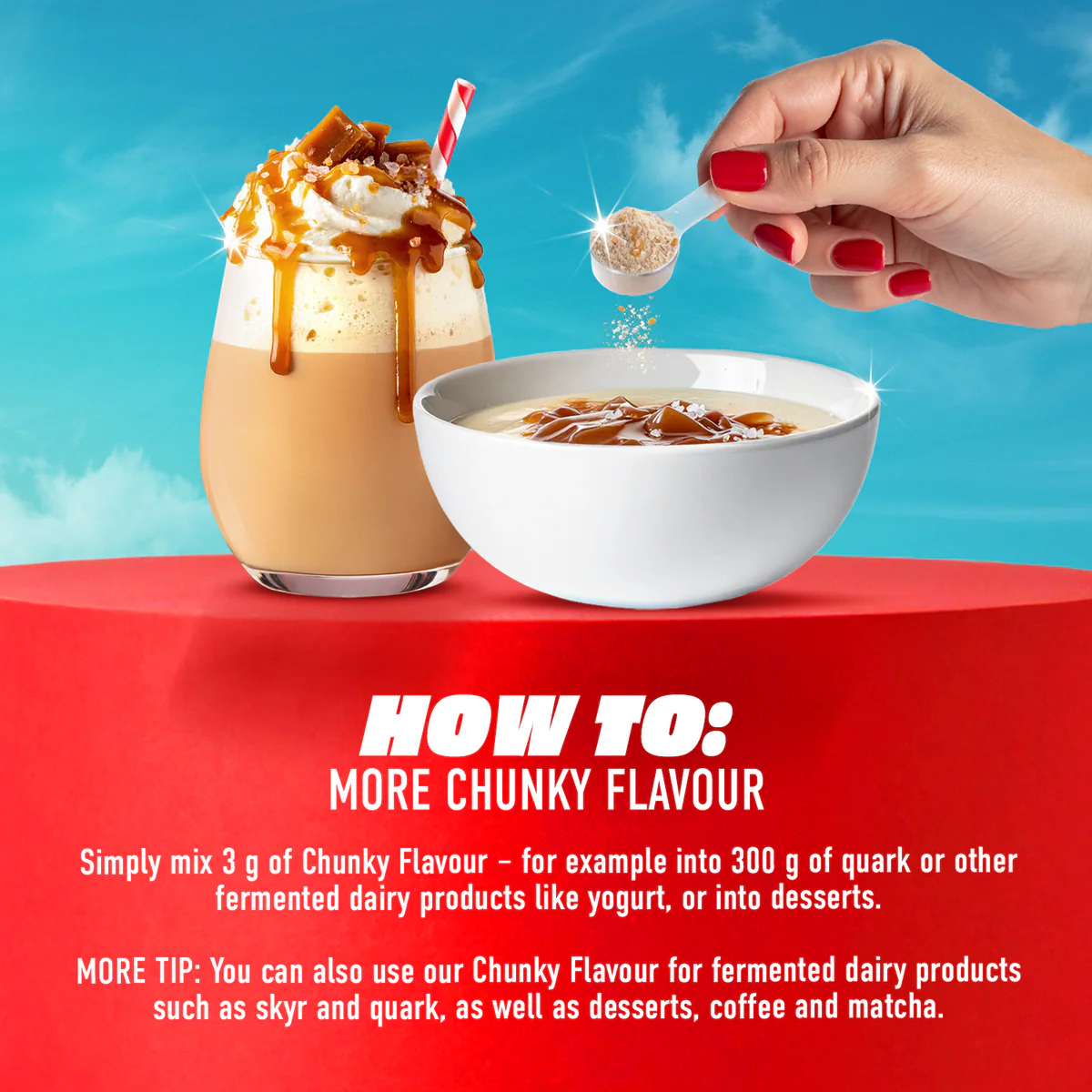 Wähle eine Geschmacksrichtung aus, rühre sie in dein Gericht ein, mixe oder streue sie und genieße – so einfach und so lecker.